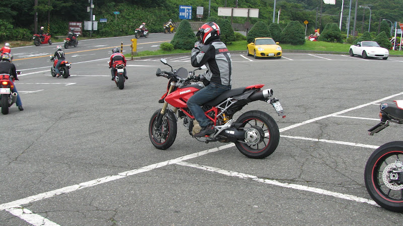 また大観山で見掛けたドカ軍団の中でハイパーモタードオーナーはもしかすると渡邊さんかと思われます。私ども一緒に免許センターで同時に大型自動二輪免許を取得させていただいた方でもあります。それにしても炎天下の元を360キロ往復走行とは本当に恐れ入ります。まだまだ現役第一線ですね〜