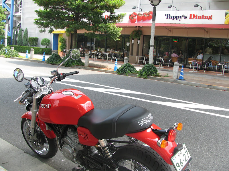 どうしても、静止状態の写真しかないので残念ですが、第三者の方に撮ってもらえると、もっとアバンギャルドな建物の中を疾走する赤いGT1000という構図が撮れる思うのですが・・・。