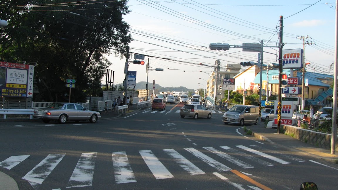 R134の葉山から逗子に抜ける渚橋交差点です。ここから先のビーチサイドは夕陽を浴びた人たちでいっぱいでした。